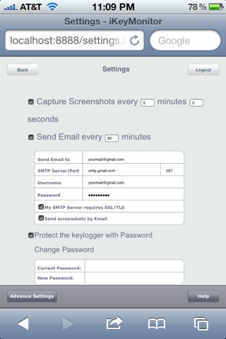 iKeyMonitor là một Keylogger iOS cho iPhone / iPad / iPod Touch. Nó lưu lại các bản ghi tổ hợp phím, các trang web, ảnh chụp màn hình và tự động gửi các bản ghi cho bạn qua email hoặc FTP.