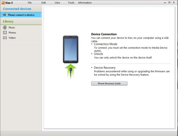 Trước tiên, hãy cài tải về và cải đặt tiện ích Samsung Kies lên PC/Laptop của bạn. Chú ý là cần dùng phiên bản 3.0 trỡ lên, nếu máy bạn đã cài phiên bản Kies cũ thì buộc phải cập nhật lên Kies 3.0 nhé. Linh tải ở đây: https://www.samsung.com/vn/support/usefulsoftware/KIES/JSP