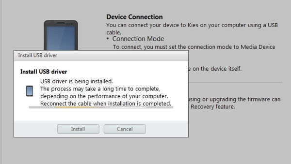 Việc cài đặt Kies lên máy tính mất từ 10 đến 30 phút tùy thuộc vào cấu hình và tốc độ internet của PC/Laptop. Cũng đơn giản, hãy chấp nhận hết những thông bảo của trình cài đặt. Sau đó, máy sẽ tiếp tục cài đặt các driver (trình điều khiển thiết bị) cần thiết và có thể yêu cầu bạn khởi động lại PC.