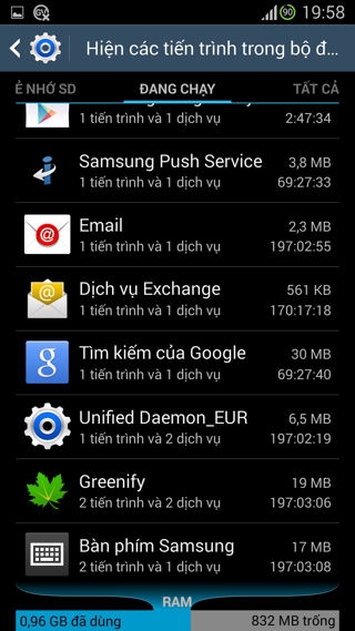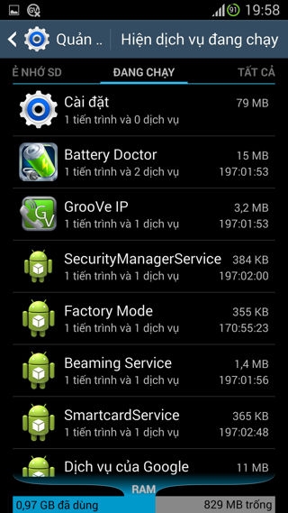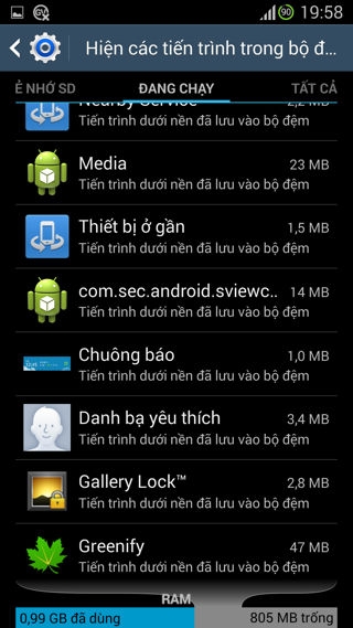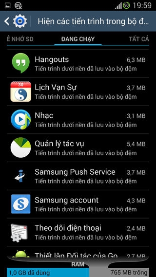 + Nhiều người mới sử dụng Android cứ nghĩ rằng khi bấm nút Home để trở về màn hình chính thì ứng dụng đang chạy đã được tắt (thoát). Rất nhiều người dùng Android cũng vẫn nghĩ rằng khi vuốt ngang ứng dụng trong 'Danh sách các ứng dụng vừa chạy' thì ứng dụng đó đã được tắt (thoát). Thật ra, trong hầu hết các trường hợp, cả 02 thao tác trên đều không hiệu quả qua ứng dụng vẫn còn ... đang chạy ngầm trên hệ thống. Để kiểm nghiệm điều này, các bạn hãy mở một ứng dụng, thực hiện lần lượt một hoặc thậm chí cả hai thao tác trên rồi vào Trình đơn (Menu) / Cài đặt (Setting) / Quản lý ứng dụng (Application) / Đang chạy (Running) thì sẽ thấy rằng ứng dụng đó vẫn còn nằm chình ình trong danh sách và vẫn đang chiếm dụng một phần tài nguyên hệ thống (RAM). Nhiều người dùng phổ thông, sau một thời gian sử dụng thì họ thường hỏi rằng sao máy tôi chạy chậm quá, bị lag quá, nóng quá, hao pin quá ... Khi được trã lời là do trong máy đang có nhiều phần mềm đang chạy ngầm thì họ khăng khằng rằng đã tắt (thoát) hết chúng sau khi sử dụng .... Câu hướng dẫn tiếp theo thường sẽ là hãy khởi động lại thiết bị và sau đó thì ... máy sẽ chạy lại bình thường. Điệp khúc đó cứ lập lại mãi rồi người dùng cũng quen dần với phương cách này.
