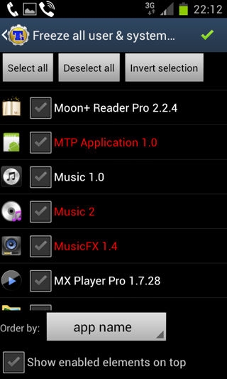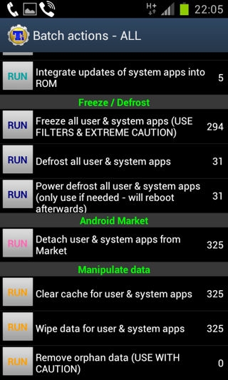 Hãy cài đặt và khởi chạy Titanium Backup, bấm nút RUN trong mục "Freeze All user and ...", rồi chọn những ứng dụng cần đóng băng. rồi click vào nút thực hiện tiến trình.
