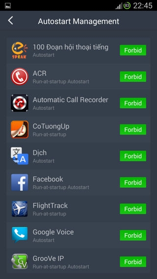 (Khuyên dùng: Nếu máy chưa root, hãy tạo phím tắt trên màn hình chính để truy cập nhanh vào phần Cài đặt/Quản lý ứng dụng và TẮT hết các ứng dụng rác có thể được. Nếu máy đã được root, hãy sử dụng Titanium Backup)