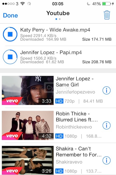Tính năng YouTube cho phép bạn tải về các video YouTube và lưu chúng ở bất cứ đâu trong iDevice của bạn để phát lại sau đó. Sau đó bạn có thể sử dụng các thiết bị tích hợp tùy chỉnh đầy đủ các dữ liệu và import các video hoặc chỉ có âm thanh khác nhau vào: Music App, Video App…