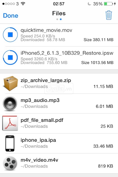 Trước đây chúng ta đã quá quen thuộc với tinh chỉnh Safari Download Manager nhưng tinh chỉnh này không được cập nhật cho iOS 7. Và giờ đây chúng ta có Safari Downloader+, đây là một tinh chỉnh mới của cùng tác giả với Chrome Downloader Plus. Nó tích hợp tuyệt với với Safari giúp chúng ta có thể tải và quản lý các file bất kỳ. Nó cũng có thêm tính năng tải video từ Youtube và import trực tiếp vào ứng dụng Music hay Video gốc của iOS.