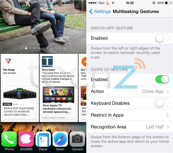 Chỉ mới ra mắt, song MultitaskingGestures nhận được khá nhiều ý kiến tích cực từ phía cộng đồng Cydia với thái độ làm việc hăng say của tác giả Hamza Sood. Giống như Zephyr, MultitaskingGestures cho phép bạn có thể vuốt từ dưới lên để thoát ứng dụng, truy cập màn hình đa nhiệm mà không cần thiết phải sử dụng phím home.