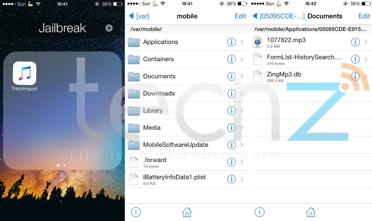Bạn đang khó chịu khi không thể chuyển nhạc tải về trên ZingMp3 hay Nhaccuatui vào trình nhạc chính thống của iOS, TrackImport sẽ giúp bạn giải quyết vấn đề đó. Sau khi tải miễn phí TrackImport trên Cydia.vn, bạn truy cập thư mục theo đường dẫn mobile/applications/Zing Mp3 (nếu bạn tải từ ứng dụng Zing Mp3)/Documents. Sau đó chọn các bài cần chuyển sang trình nhạc chính thống và chọn Import. Ngoài ra, TrackImport cũng cho phép bạn chỉnh sửa được tên Album, Nhạc sĩ thông qua Edit ID3 Tags.