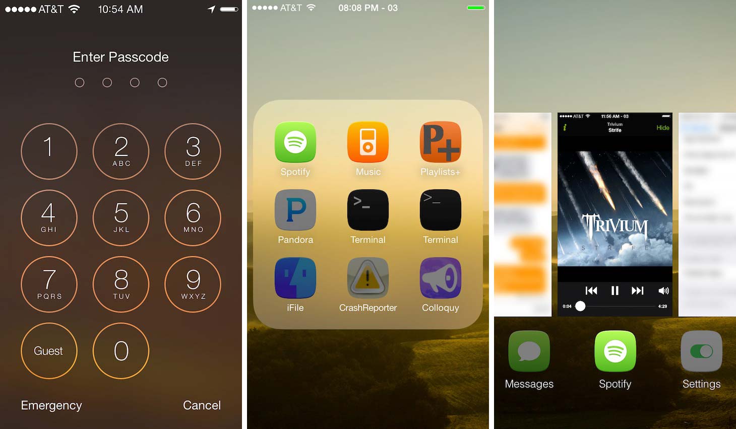 Ngoài ra, bạn có thể di chuyển thanh Control Center lên thanh trạng thái để phù hợp với thao tác vuốt từ dưới lên của MultitaskingGestures, hay chụm năm ngón để thoát ứng dụng, tuy thao tác đôi lúc khó chịu đối với kích thước màn hình nhỏ. Đồng thời, vuốt từ phải sang (hoặc từ trái) để kích hoạt các ứng dụng trong trình đa nhiệm.